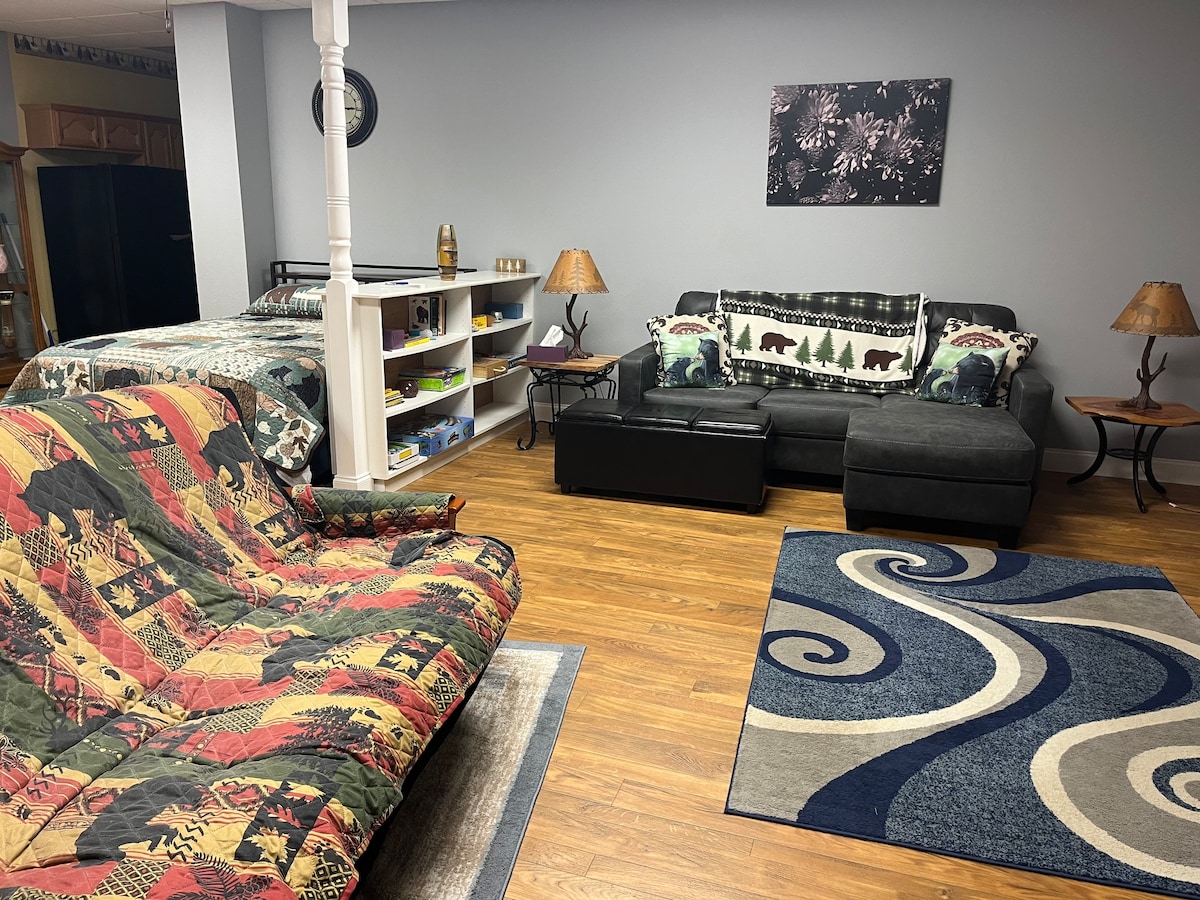 Affordable, Cozy, Lower Level Log Cabin Retreat.