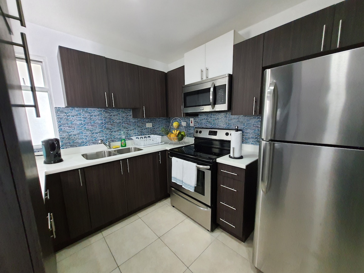 Apartment is situated in the heart of Kingston. Recently remodeled, tastefully furnished, super clean, comfortable and with good hillside view. Walking distance from restaurants, supermarkets, pharmacies, clubs and health care facilities. TV and air conditioning in spacious bedroom and living area. AIRPORT PICK UPS & TAXI SERVICE available at additional cost. Apartment is located on the second story. You will be required to walk two (2) flights of stairs.
