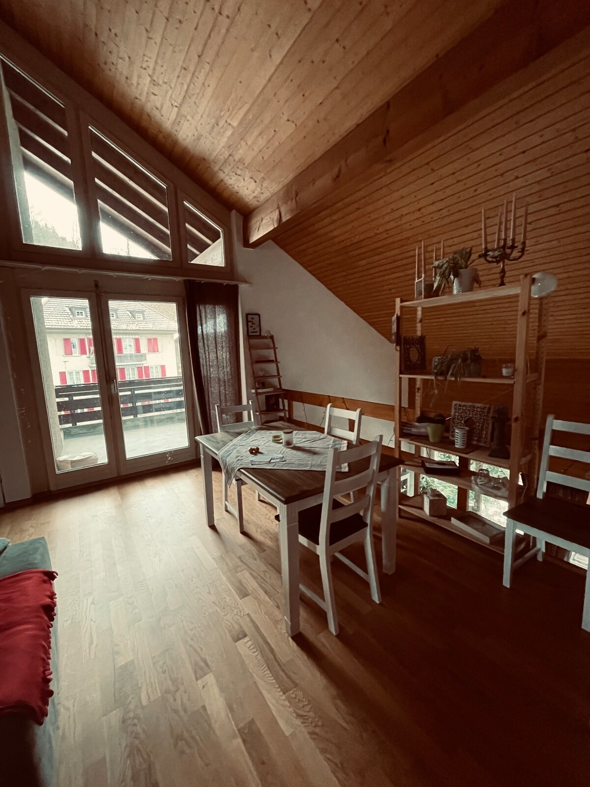 This spacious apartment is located in the cozy attic of a typical Emmental farmhouse named Bühlmenschwand. In addition to the hosts, friendly dogs, cats, sheep, donkeys and chickens live on the Bühlmenschwand farm. From here you can enjoy beautiful walks through the adjacent woods and meadows, or further discover the Emmental by car or bike.