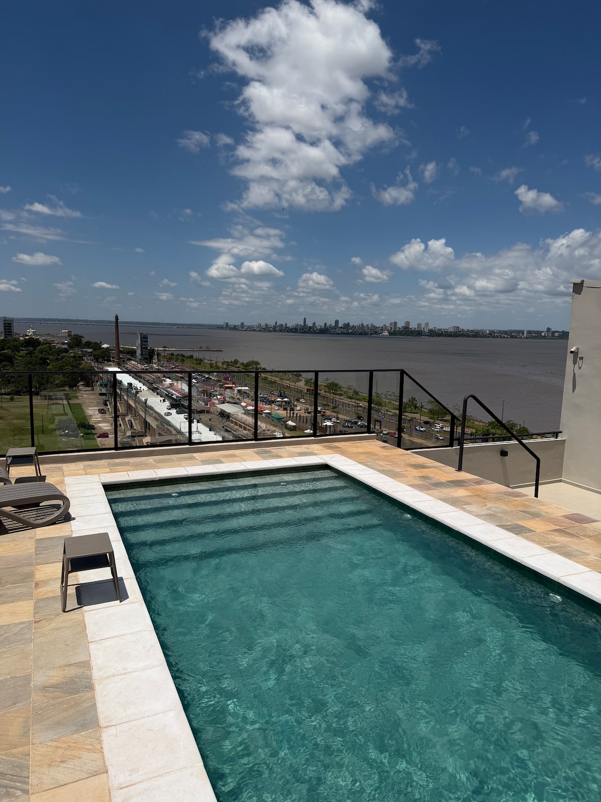 Discover our cozy apartment in a safe, central area. Enjoy a balcony overlooking the Paraná River and relax on the terrace with a swimming pool. It also has a grill for your barbecues and parking. The ideal place for your getaway!