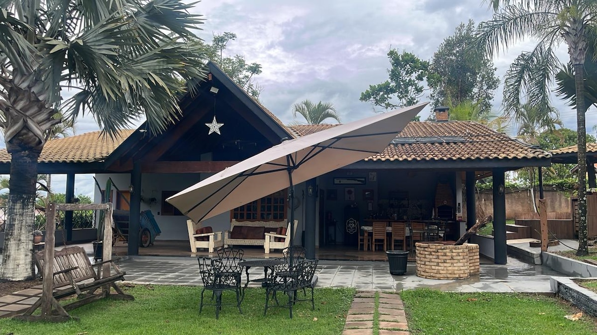 A chácara possui piscina e churrasqueira, mesa de bilhar, campo, sala com TV, cozinha interna completa, cozinha externa com fogão industrial, 3 quartos e mais uma suíte, todos com ar condicionado, quarto externo com circulador de ar, wi-fi, ampla varanda com rede. Acomoda confortavelmente 13 pessoas. Ideal para reuniões familiares. Estacionamento para vários carros.
