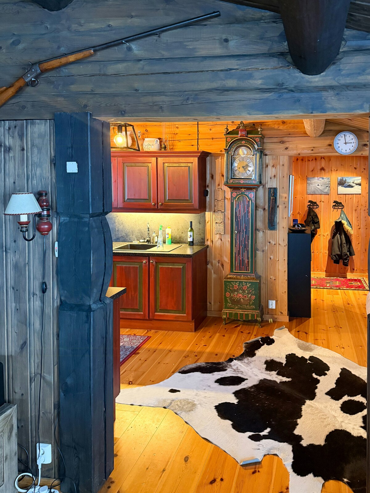 Would you like to experience the atmosphere of the old farmhouse on our farm? The house was built in the 19th century, last restored in 1999, where the original timber walls inside were preserved, and the house got a new cladding outside. The furniture is partially old, and you feel like you are going back in time. Still, you have a functional kitchen and bathroom. Here you can enjoy the view of Femund when you wake up. Good hiking possibilities in both summer and winter. You can fish, cycle, ski, pick berries or just relax and find peace.