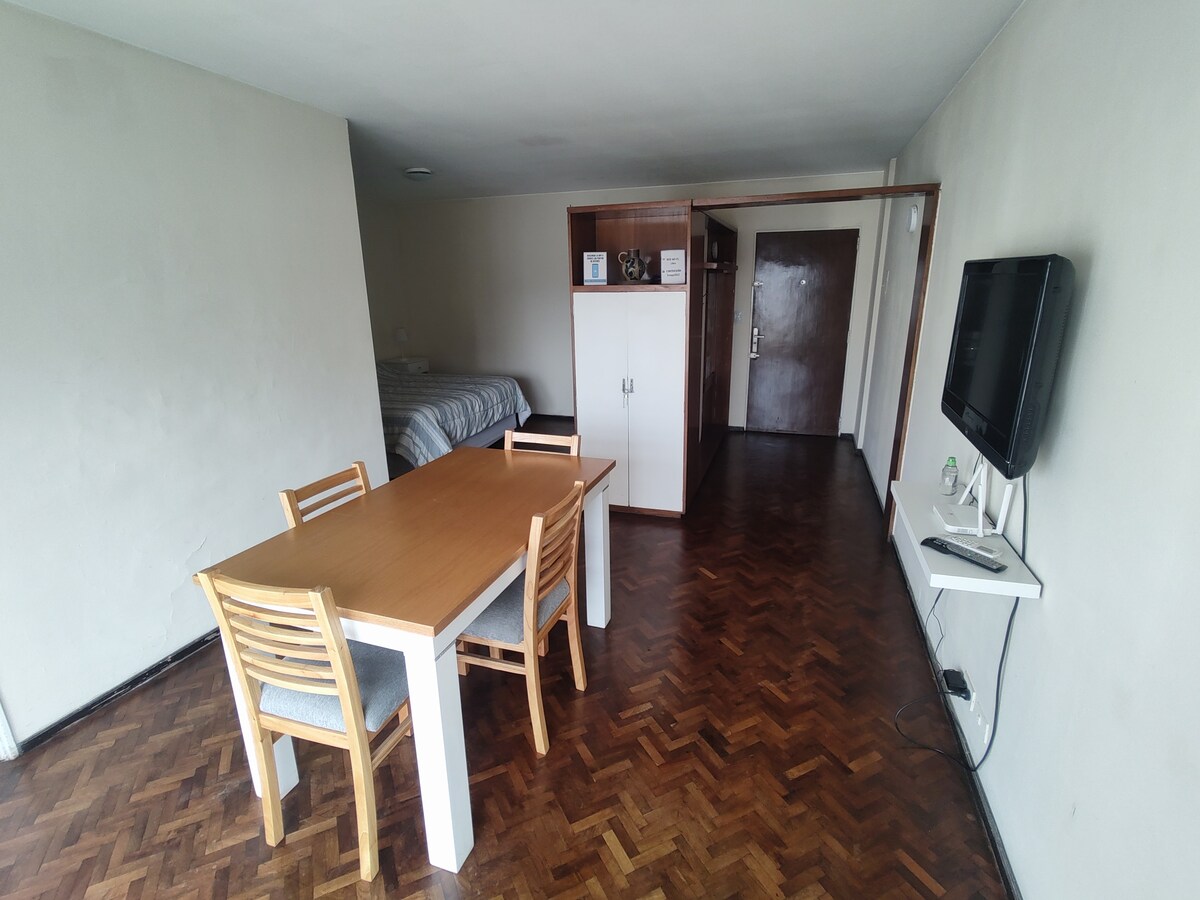 Studio. Located downtown, one and a half blocks from the Cathedral (Plaza Mitre) and steps from the city's Costanera. On the same block there is a mini supermarket, butcher shop, also a few meters away there is a kiosk, laundry... The apartment has a balcony for you to enjoy the beautiful view (view of the Sanctuary). There is a stove, air conditioning, and a ceiling fan.