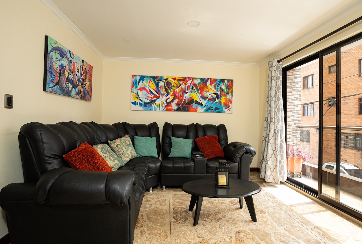 Enjoy the heart of Envigado! Cozy 50m2 third floor apartment without elevator in Barrio Obrero (by Parroquia San Mateo). Close to transportation, hospitals, churches, markets, restaurants, and pharmacies. 15 minutes from El Poblado (5.3 Km). This comfortable retreat offers: - A maximum of 7 guests - Complete furniture and utensils - 200 MB Internet and Netflix Perfect for families, groups, or couples. Rest in a warm and cozy atmosphere. Book now and experience the magic of Envigado!