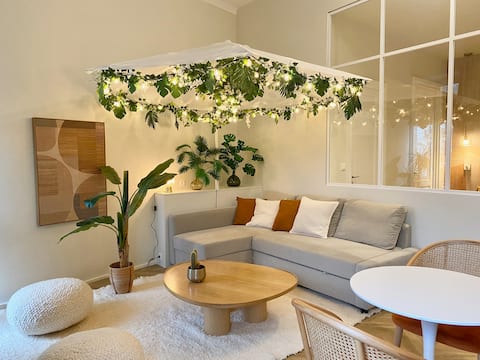 An intimate, sensual and vegetated studio 🌷 🌿Treat yourself to an unforgettable romantic getaway in this cozy and green studio. 🌷Immerse yourself in a soothing atmosphere, where the walls are adorned with greenery and every detail has been carefully thought out to awaken your senses. 🛏️ Comfortable bedding decorated with rose petals 🚿 A shower with a view to the bedroom Romantic ❤️ extras available: breakfast, petals, naughty games... ✨ Book your moment now. ✨