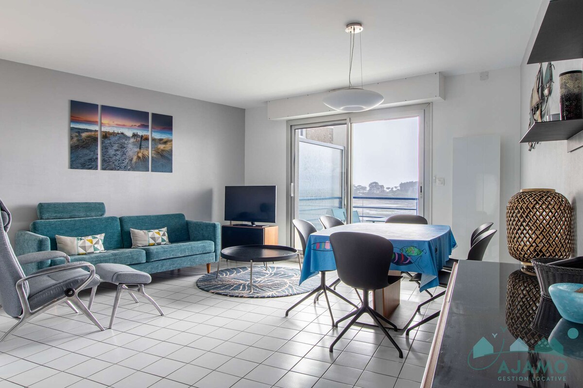 Welcome to the recently fully renovated "Lomy" Duplex ✨ 🌊The accommodation consists of: -Bedroom with 160 bed &Sleeping area with 2 cribs -SDB with balneo (180 x 90)- rain shower -Sauna 2 people on the terrace -Living room/Equipped kitchen -Large balcony with stunning views of the harbor, ideal for a sunrise coffee or an aperitif on the way back from the walk! Parking in the port parking lot Included: -WIFI - Bed linen + 1 towel/person ⚠️3rd floor without elevator