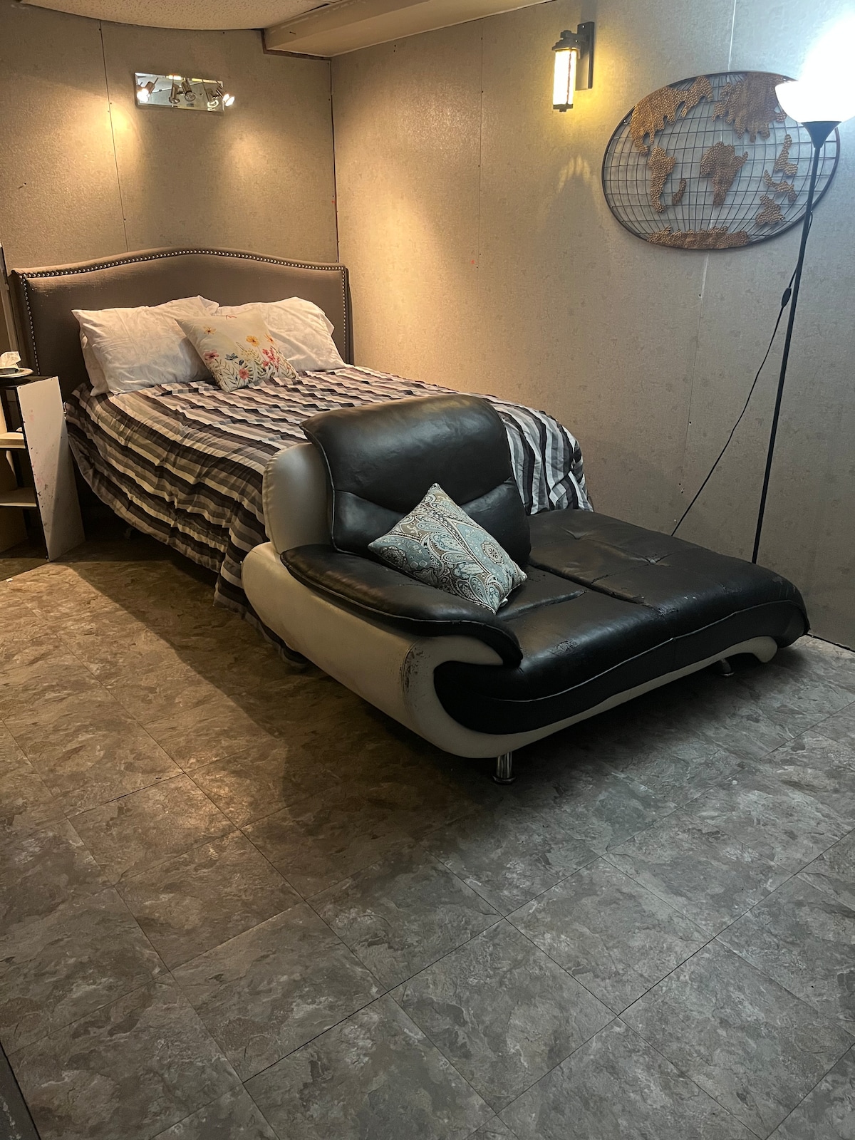 Large basement bedroom with mini kitchen