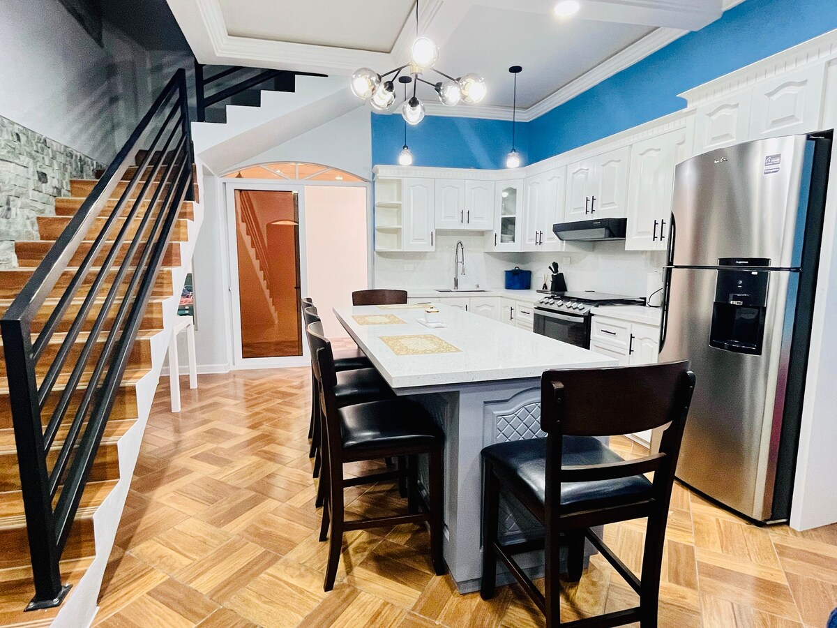 CASA ELIZA in the heart of Esquipulas, 200 m from the basilica Cozy spaces to break the daily routine. Our spaces Family room, dining room, equipped kitchen, first level guest toilet, 2nd level toilet and shower with hot water, laundry, outdoor area with table to share and 3 bedrooms 1st room 1 King bed, 2nd room 2 Queen beds both on the 2nd level, 3rd room on the first level thinking about the comfort of adults with 2 imperial beds
