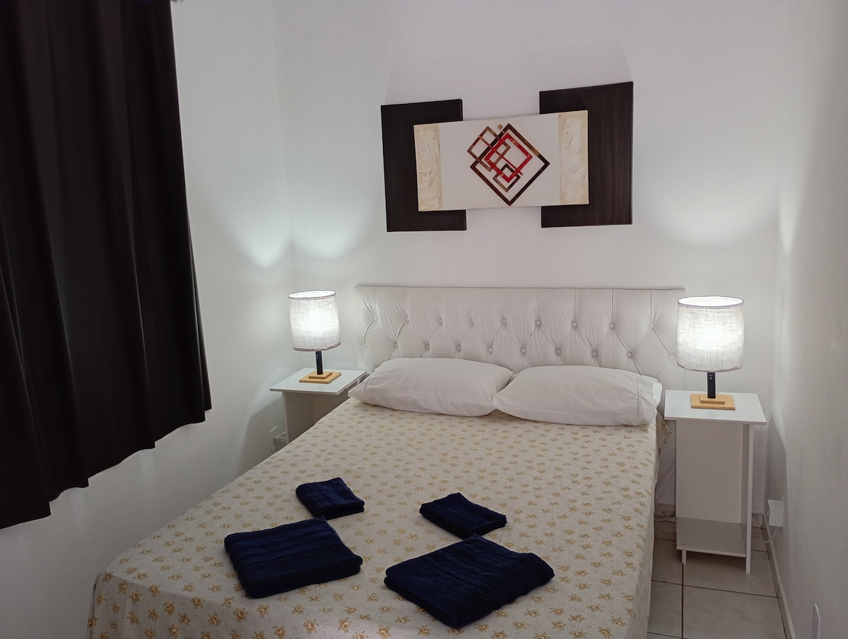 Forget your worries in this spacious and serene space. Furnished Apartment Close to Pampulha Airport, Pampulha lagoon, Mineirão, Drogaria Araújo, BH and Verdemar supermarket, PRIMEFIT Gym, McDonald's, Beach Tennis, Lá Palma restaurant, Soul Jazz Burger. - 1 Covered parking space - 1 Bedroom with Air-conditioning (complete bedding) - 1 Bathroom (2 bath towels, 1 face towel) - American Kitchen (combined with the living room) For Guest Use - Community laundry