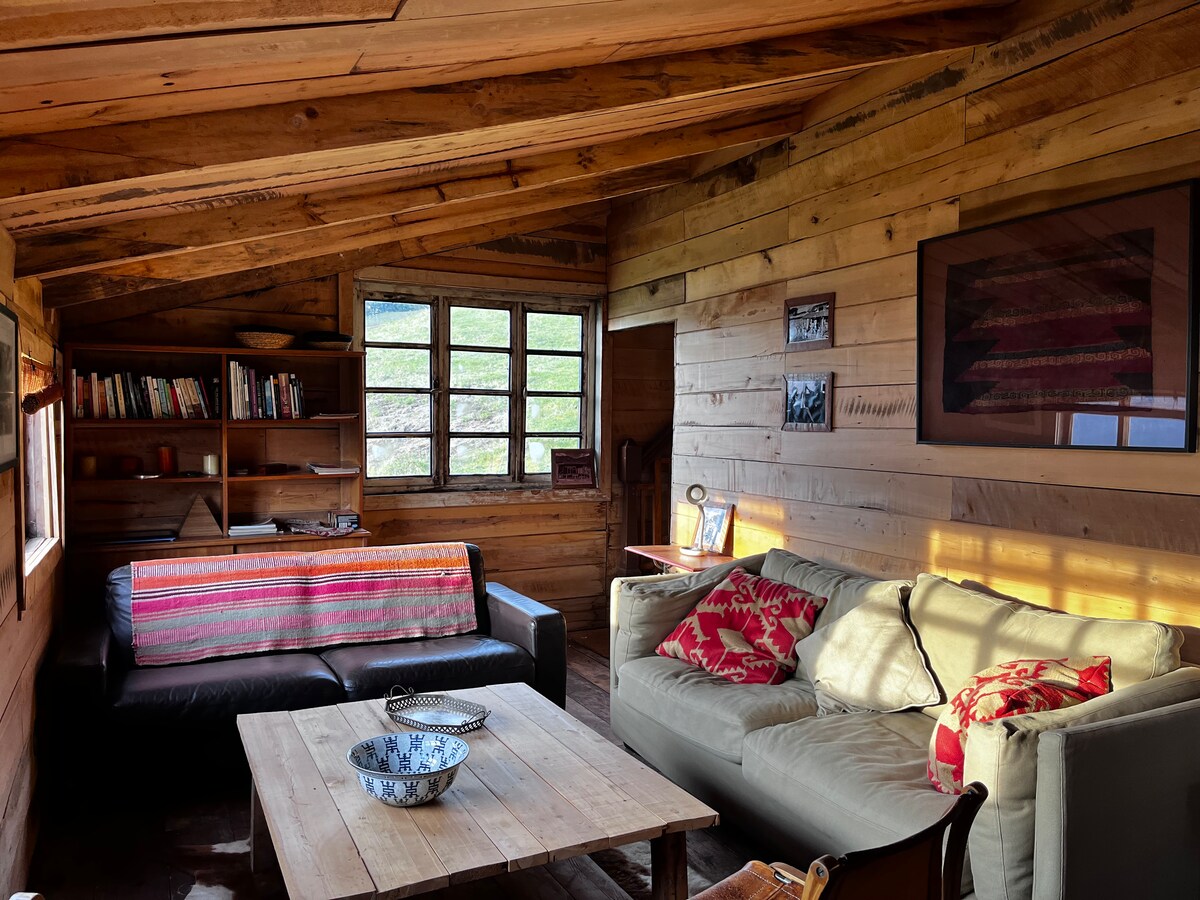 With a very nice view of the Reloncaví estuary, live a totally off-grid experience. The house is powered by solar energy and water from the mountains. The house is in the Cohiue de Los Columpios sector, right in the middle of the trekking that takes you to them. Access to the house door is by 4x4. For those who don't have a 4x4 to go up, I can tell you that I coordinated with the neighbors who manage the Cochamó swing.