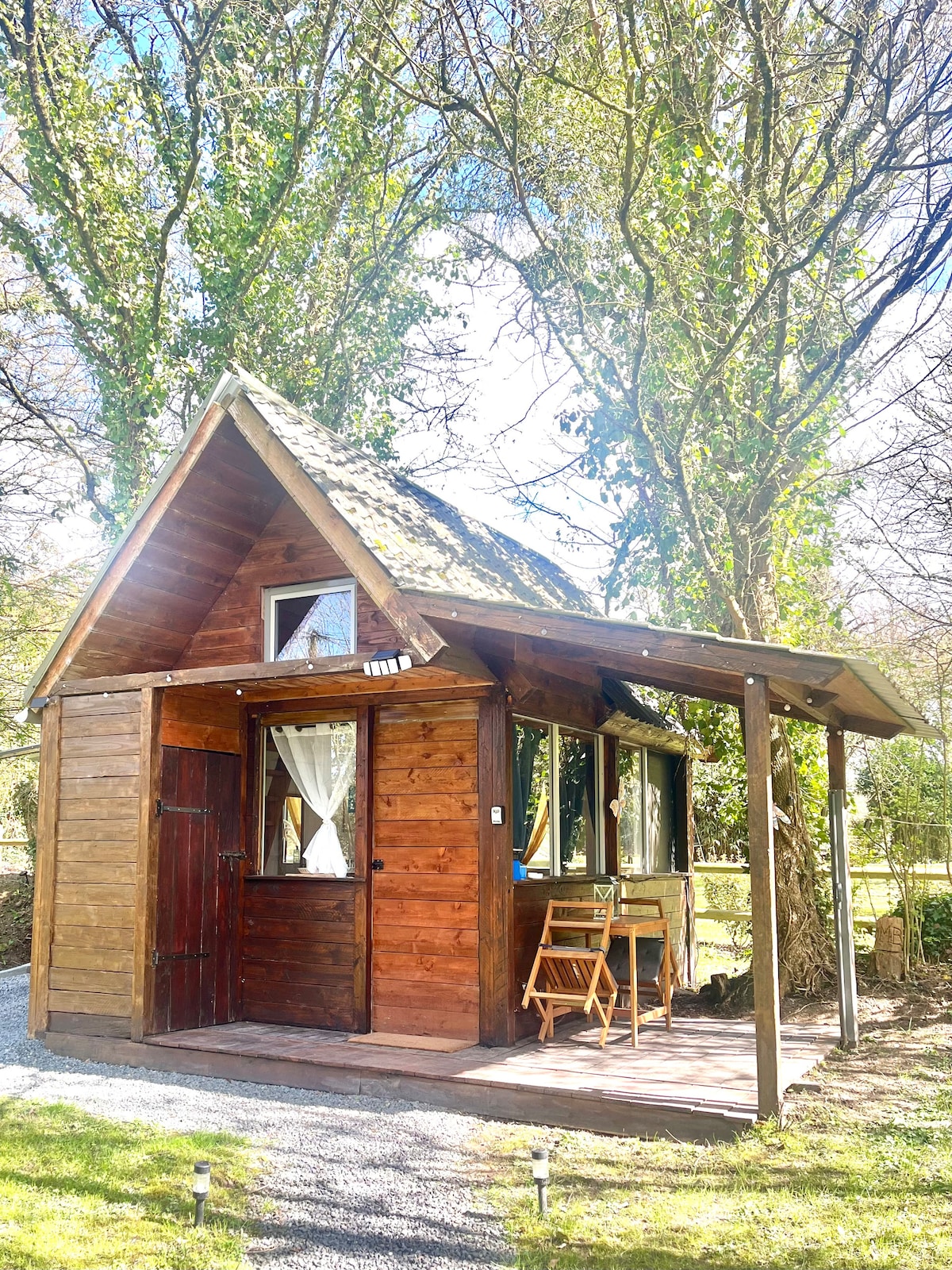 20 minutes from the beaches of the Côte Fleurie (Cabourg to Deauville), come and enjoy a unique experience in our independent chalet, located on a one-hectare wooded park in the heart of the Pays d'Auge. Enjoy stunning views of a typical valley, in a peaceful setting, perfect for total disconnection. The private terrace facing south, without overlooking, is perfect for enjoying the calm. Inside, a dinette area guarantees you an autonomous and rejuvenating stay.
