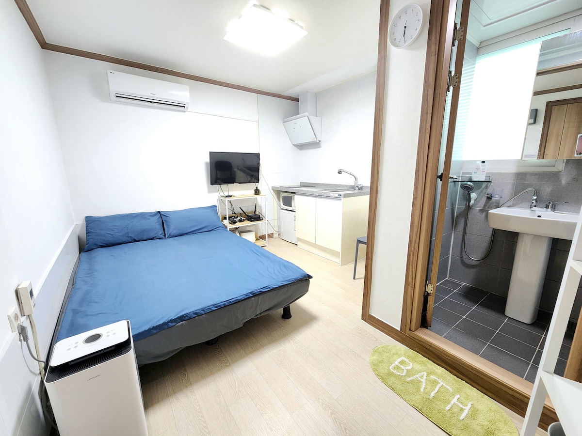 Hello. 😊 Welcome to a comfortable and cozy emotional accommodation ari stay. A cafe-like study desk area with a round wall mirror and wood-tone shelves. Laptop-friendly height, illumination, and warm mood lighting Books, coffee cups, dry flower props, etc. are detailed, so I recommend it as a place for self-shooting and emotional photography. It also has an independent desk area, so it is recommended for remote work or digital nomad travelers. Quiet residential atmosphere + warm lighting You can conveniently charge electronic devices, have a cup of coffee, and even work on a laptop. Making memories with friends.❤️ Traveling with a lover.❤️ We will provide you with the comforts of home and a hotel-like comfort so that you can enjoy a relaxing trip with your family.❤️ Take a walk, jog, or have a cup of coffee. Live like a local in a quiet residential area. And a place where you can visit hot tourist attractions~ The longer you stay, the more attractive it is. ❤️