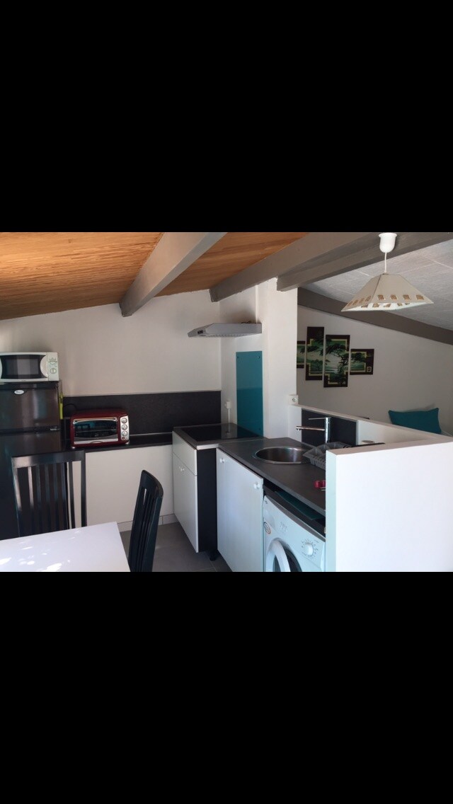 Furnished studio close to the leisure base fully renovated 20m² studio,In very quiet residential area, on the ground floor 10 minutes walk from the SNCF train station 15 minutes from the Recreation Base including lounge/night area: extra bed with single bed 80 x 200/double 160 X 200, TV, storage dining area and fitted kitchen (induction hob, fridge-freezer, microwebs, kettle, toaster & dishes). Shower room Parking place
