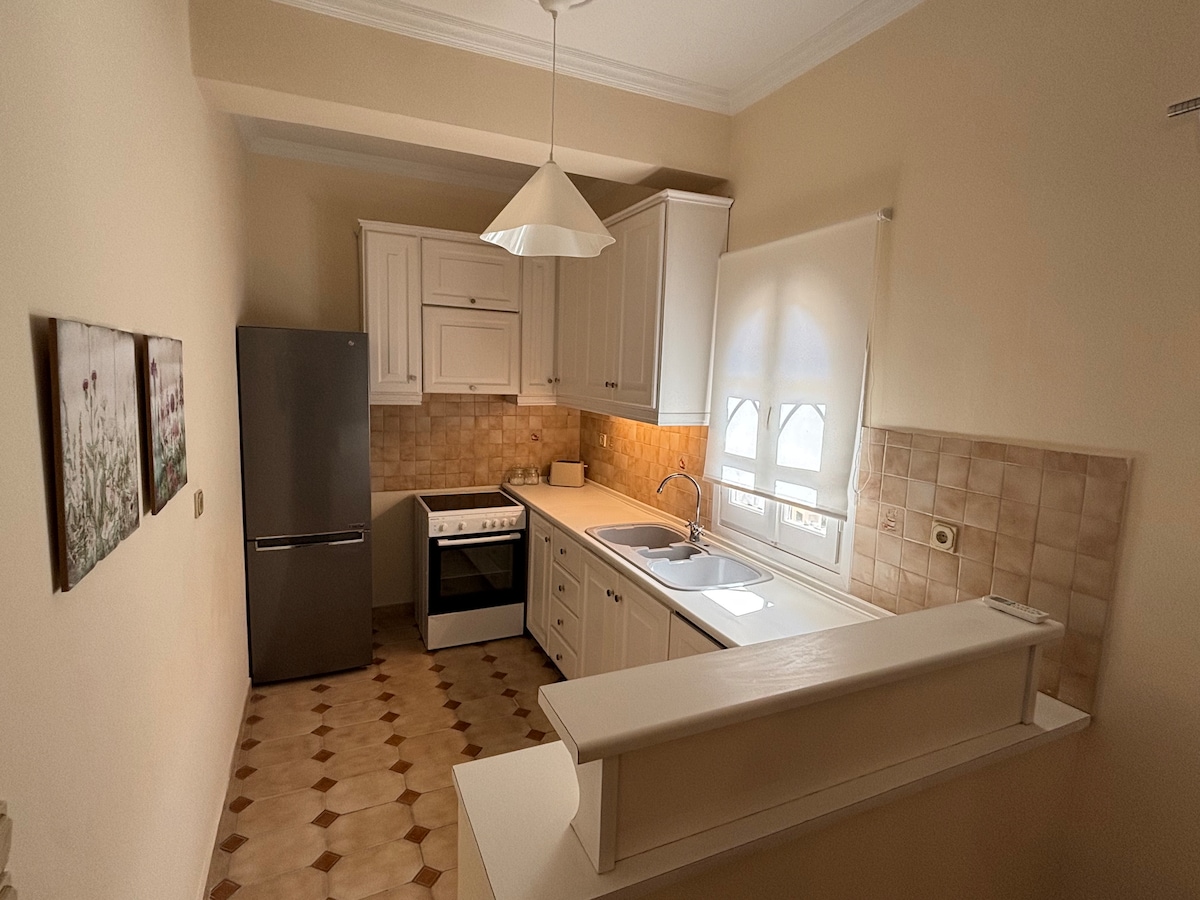Charming newly renovated two-storey house for two in the heart of Agios Ioannis, central Corfu, right on the village square. The ground floor features an open-plan living room and kitchen, plus a small WC (no shower). Upstairs, the bedroom offers a peaceful retreat with a double bed and an en-suite bathroom with shower. Ideal for a couple, the home blends traditional character with modern design, perfect for enjoying authentic Corfiot village life