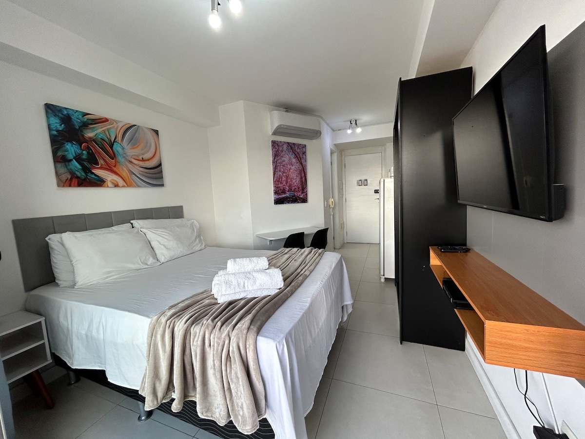 PRÓXIMO DE TUDO: Expo Center Norte, Shopping Center Norte, Metrô Tietê, Rodoviária Tietê, Anhembi, Sambódromo, Marginal... Studio confortável, aconchegante e completo para até 3 adultos e 1 criança. Cama box de casal com cama auxiliar. Cozinha com todos os eletros domésticos e utensílios. Roupas de cama, mesa, banho e Itens de higiene. Ar condicionado, secador de cabelo, ferro de passar...