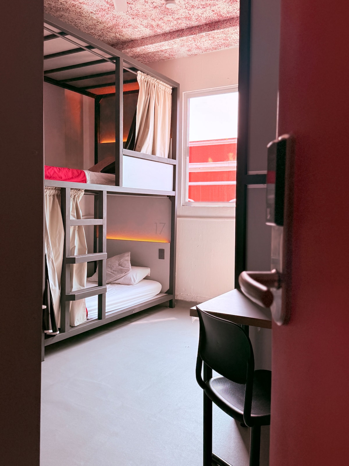 Centrally located hostel with new facilities across from Parque Rojo in Guadalajara, 1 km from the Cathedral. Bunk beds have individual reading lights, power outlets, and blackout curtains. Bathrooms and showers are shared. Earplugs available as we are located on a major avenue, so there may be noise. We offer continental breakfast, towels, soap, shampoo, and free Wi-Fi. Guests have access to a beautiful terrace with a view, as well as a living room, dining area, and fully equipped kitchen.