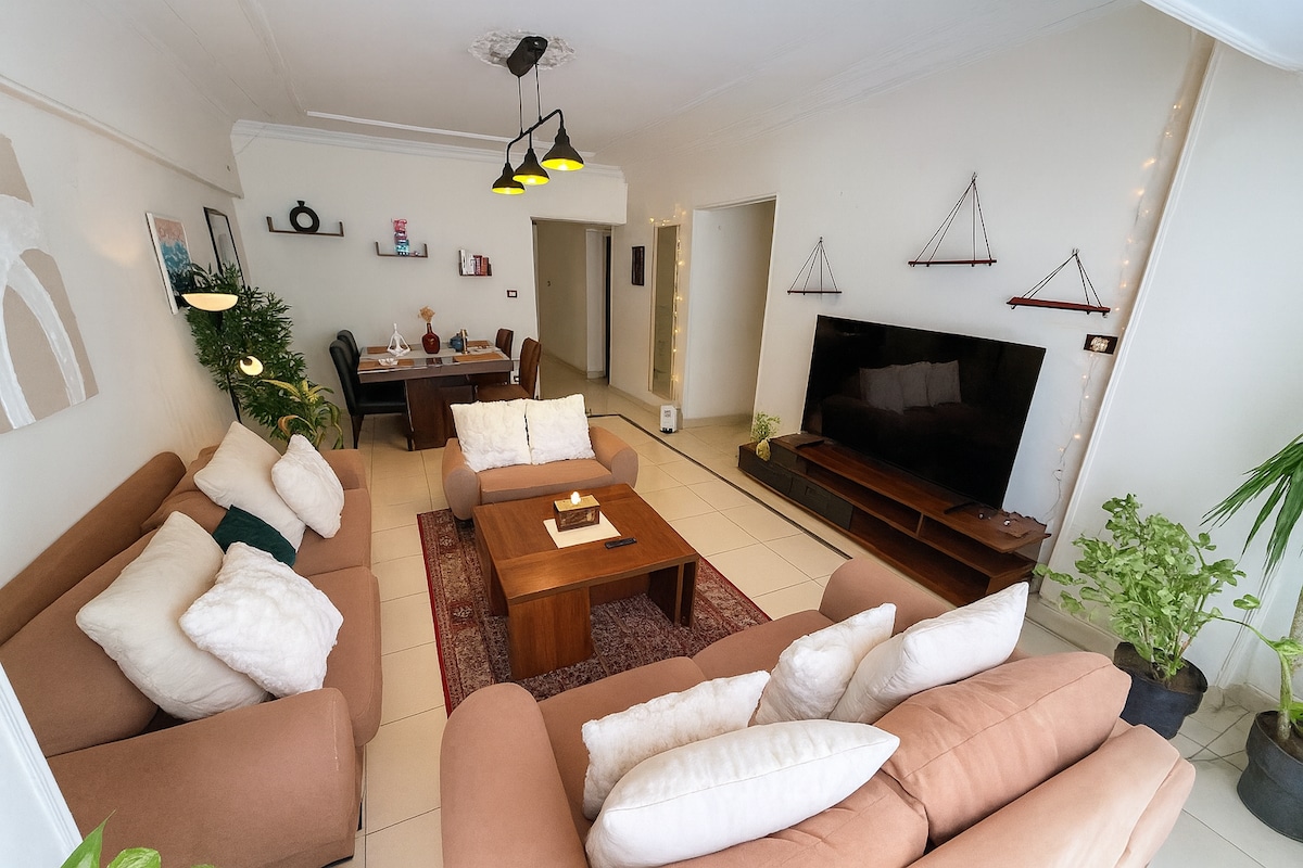 An ideal location with many services. The apartment is full of antiques gathered from all around the world. Great design and decor combined with sufficient spacing make it suitable for everyone. Includes all the appliances needed for day-to-day life. E.G. It's on the 1st floor, making it convenient and easily accessible. The area is calm and quiet. safety equipment such as a CCTV system and fire extinguisher.