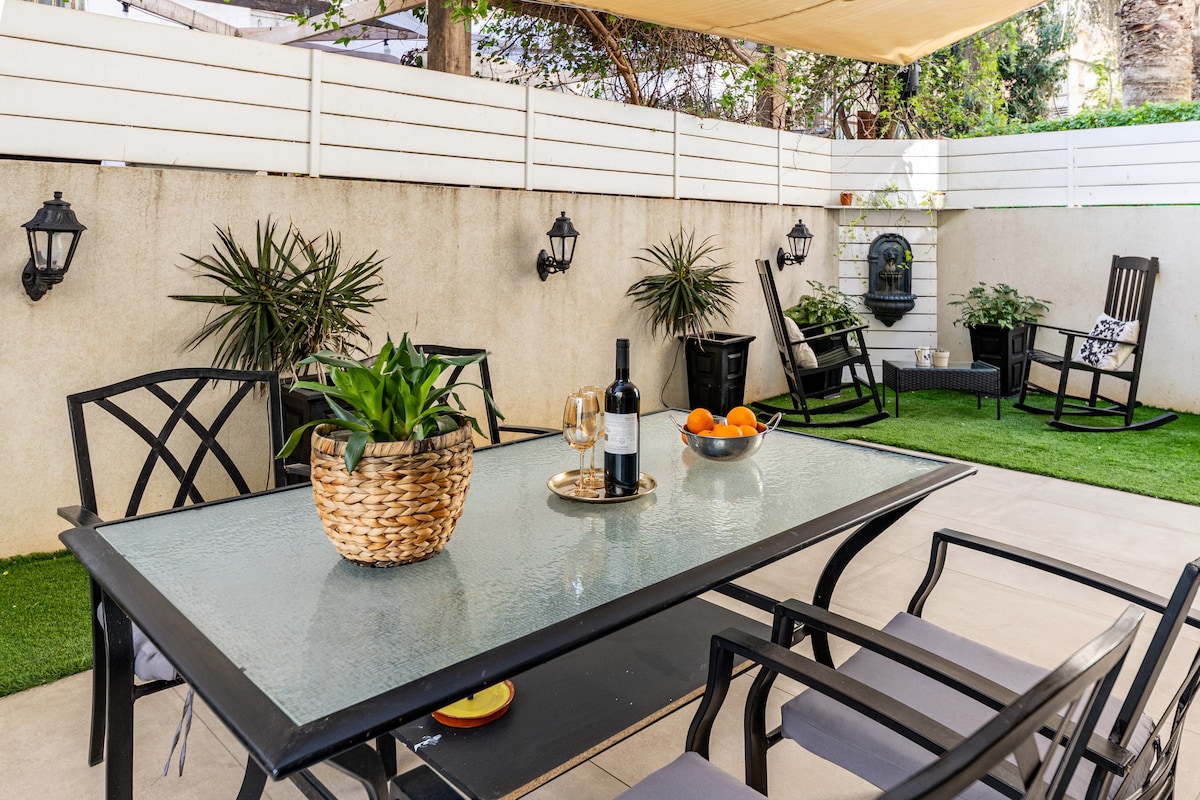 Welcome to a beautifully designed Luxury studio with a private garden, a rare quiet retreat in the heart of Tel Aviv. Perfect for couples, a romantic getaway, or business travelers, comfort, privacy, and an excellent location This spacious 50 sqm studio is bright and thoughtfully designed, featuring A very comfortable double bed Elegant living area with seating Fully equipped kitchenette Modern bathroom Direct access to a private garden- ideal for morning coffee or an evening glass of wine