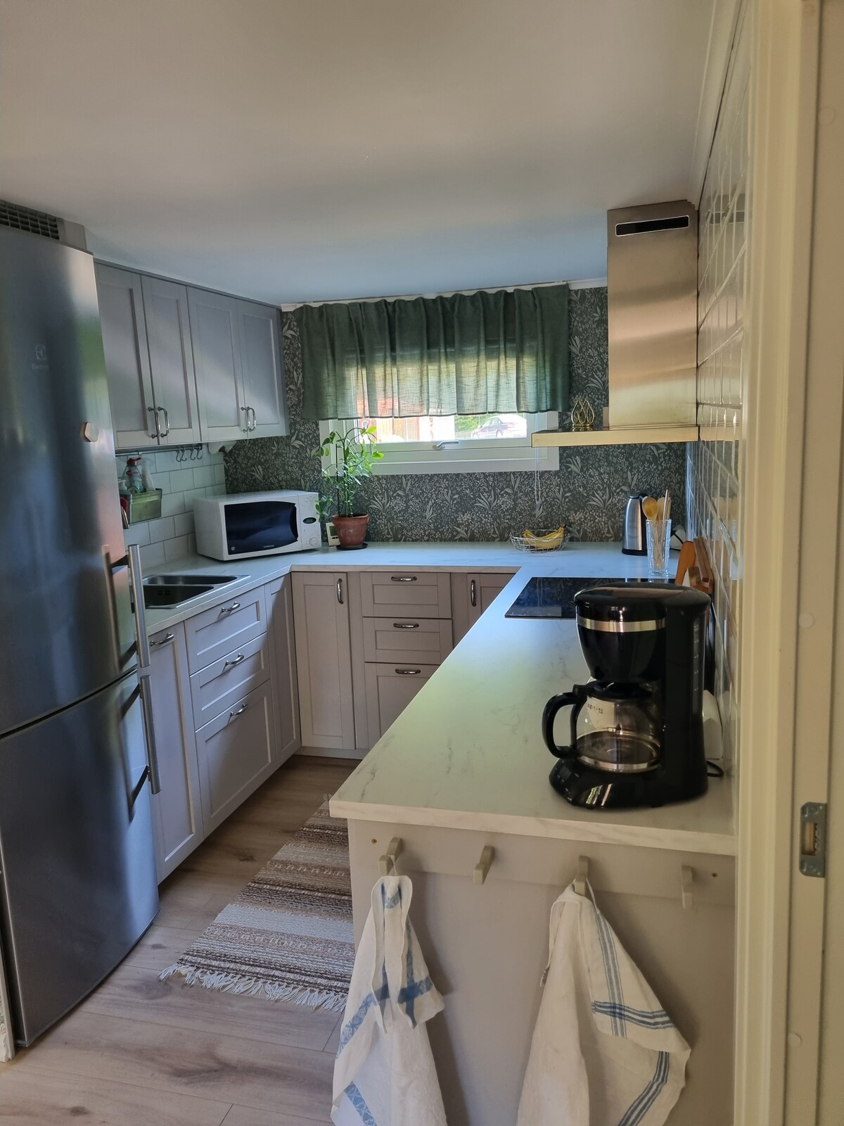 The cottage is located on a shared plot with the main building. Private jetty with swimming. Balcony and small barbecue. The forest around the corner, berries and mushrooms picking. 7 km to urban area with shops and more. The cottage has a kitchenette with fridge. What is needed for cooking and eating. Towel, dish brush, dishcloth, dish detergent are included. Bathroom with shower, towels for indoor use. Soap, shampoo, toilet paper, hair dryer Bed linens are included. Breakfast can be ordered by agreement. SEK 100/person WiFi is available. Canoe and rowing boat available to rent 250/day,