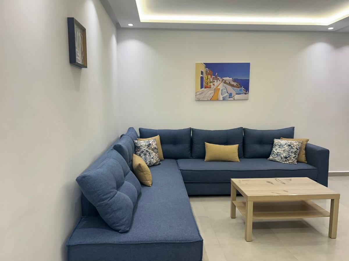 Apartment No. 1 - Ksar Sghir Beach. Modern, bright, just a short walk from the beach without having to cross the street. Easy to get through, even with a stroller. Calm guaranteed to the sound of the waves. Comfort: double glazing, electric curtains, Smart TV, Wi-Fi, equipped kitchen, medical mattresses, Italian shower. 10 min from Tanger Med port and less than 2 min from services: pharmacy, doctor, shops, bank. Great for a relaxing stay for families or occasional travelers.