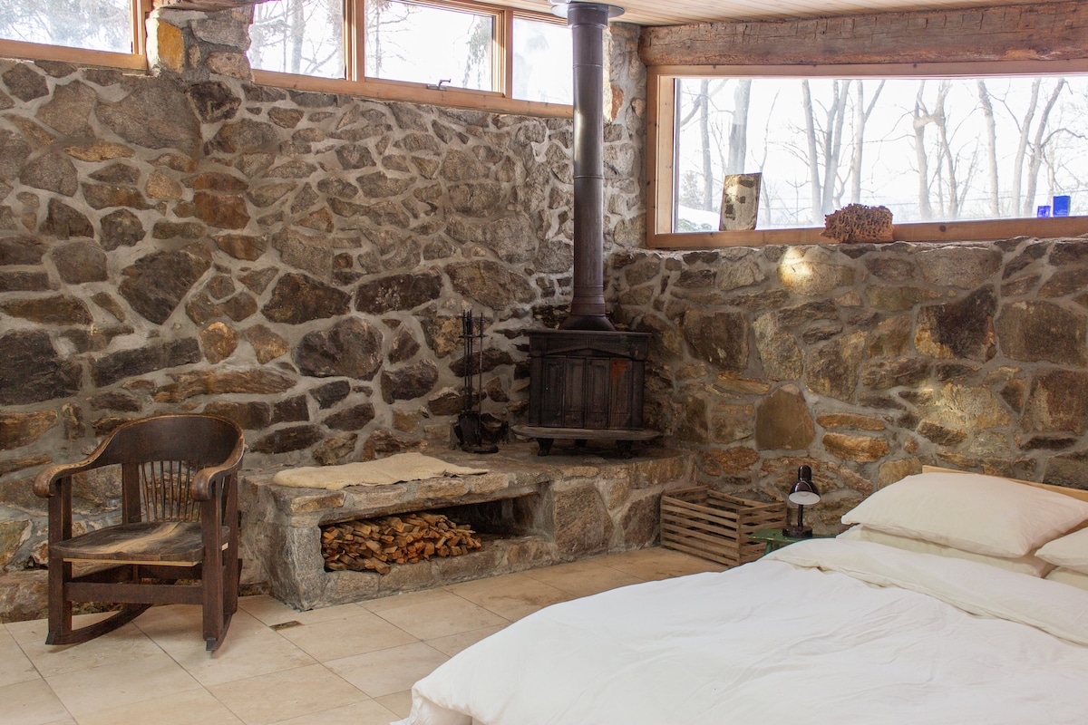 Seated beside a playful cascade on Moffit’s Brook, this 1960 Log Cabin has been mindfully rejuvenated. 62 miles from NYC, The Zen Cabin offers respite from the hustle and bustle. Skylights, windows, and doors connect you with nature. Media-free, pet-free, and shoe-free. This laid-back retreat resides in one of Connecticut’s most bucolic and protected villages.