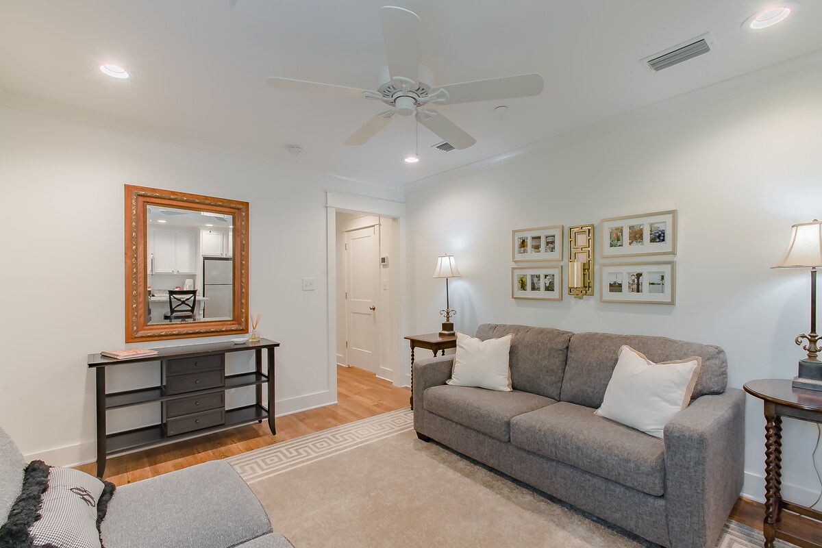 Our one bedroom with a loft is 1400 sq ft directly across from Greers grocery store, above Towne & Beech, and a stones throw from Page & Palette. There are so many shops & restaurants within walking distance of the condo and I love sitting on the balcony taking in the sites. The master bedroom has a king bed with a tempur pedic mattress as well as a master bath with tub and separate shower. The loft area has a queen bed with a tempur pedic mattress as well as a twin daybed.