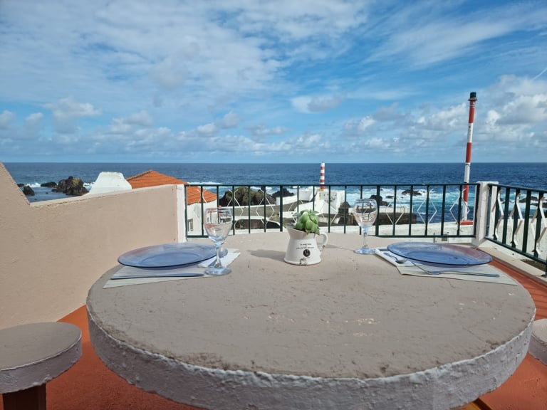 30 sqm studio apartment with sea view in Lomba. Free and unlimited Wi-Fi, fully equipped kitchen. Open bedroom that can be reached via a so-called English staircase. (Children not under 8 years old) We would like to point out that the bed length is 1.90 meters and the width of the bed is 1.40 meters. July & August are also very, very warm here. Please note that we do NOT have air conditioning. There is also no dishwasher or washing machine