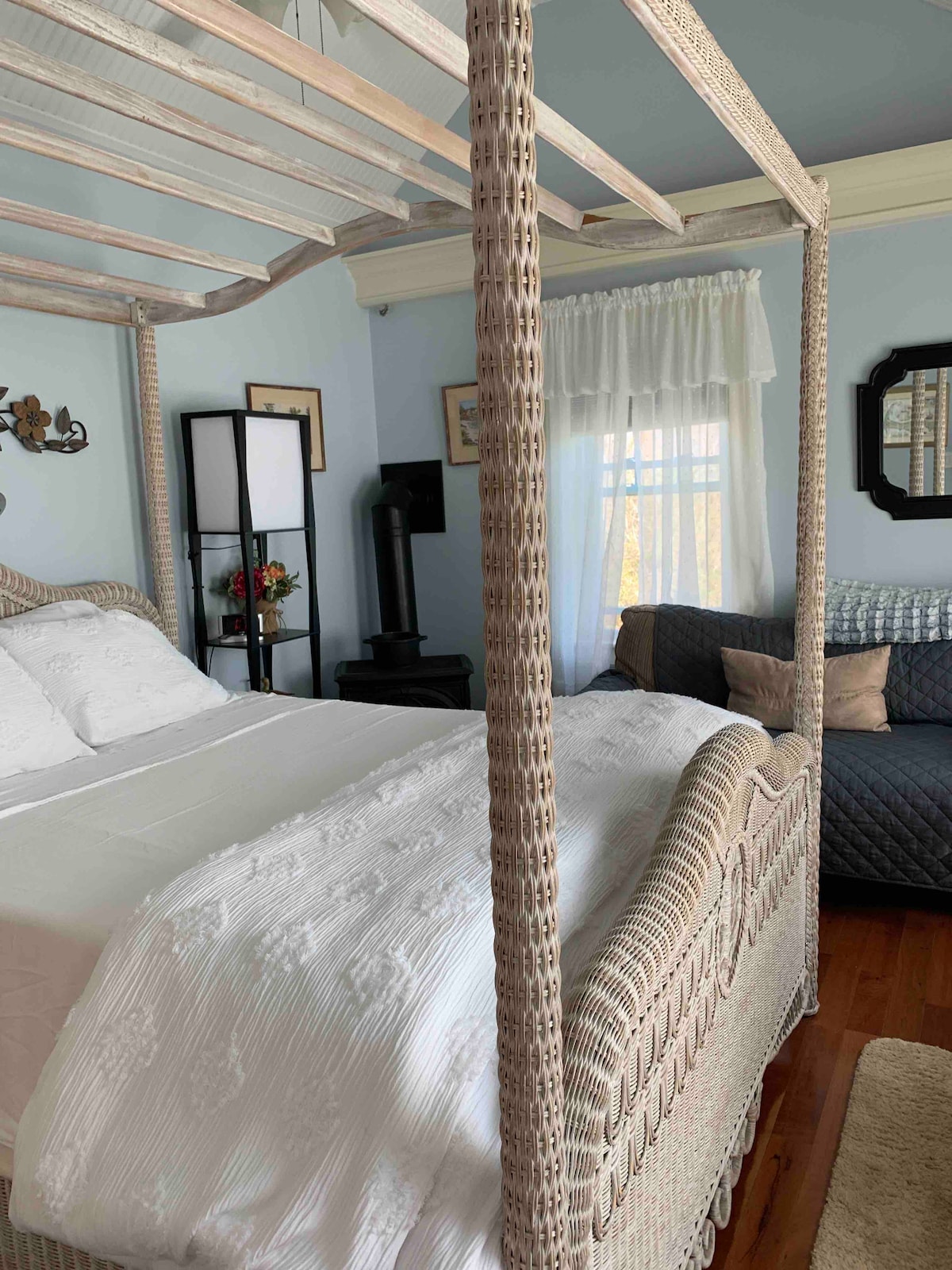 Filled with art and feng shui, our beautifully appointed home is tucked amidst vegetable gardens and flower patches. Outside you'll enjoy nature walks and beaches. Afterwards, you'll retire to a cozy bedroom, private bathroom, and leisure room with skylights, TV, and sofa to relax in. For breakfast you'll savor local specialty foods such as gourmet granola, artisan bread, steel-cut oats, and more. If you like basking on a deck or chilling on a porch, then this is where you'll want to call home.