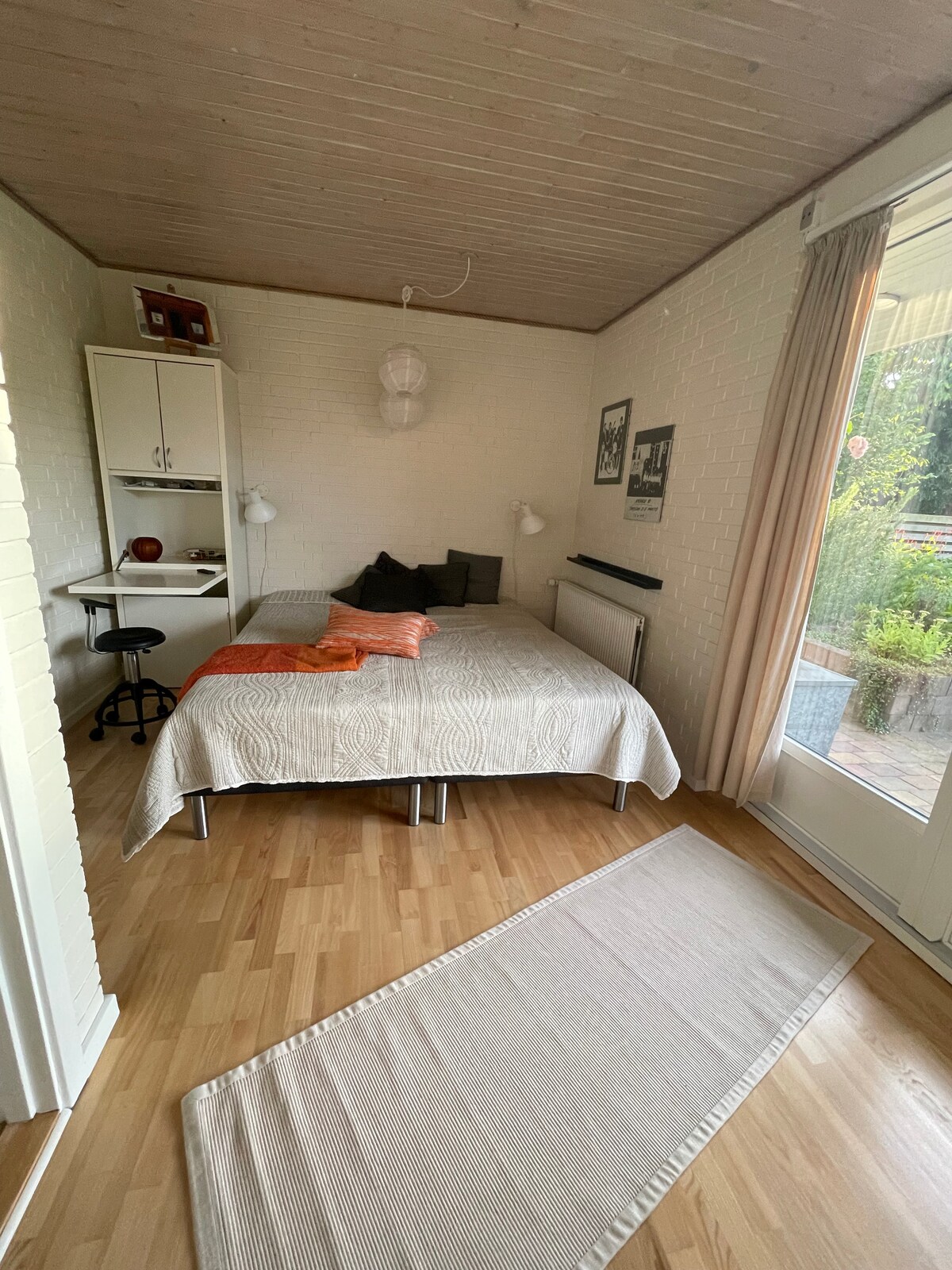 Easy access to everything from this perfectly located base in Næstved. Less than 1 km to the city center and station. 300 meters to Næstved Arena, stadium and gymnasium. Small annex with sofa and TV, dining table and 2 chairs, kitchen, private bathroom, bedroom in the basement with double bed 140x200. Private enclosed terrace with barbecue and outdoor fireplace. Not suitable for people with walking difficulties or small children, due to steep stairs. Private entrance through the garden. There's a little dog at the address, but not in the annex. More photos on TikTok @tinyannex