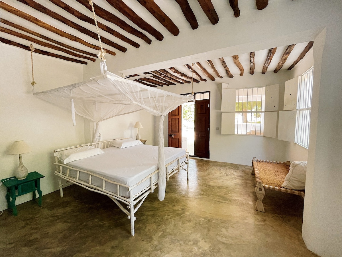 A charming white-washed seafront cottage at the edge of Shela village, nestled in a tropical garden on a small estate. Enjoy spectacular views of the channel and mangroves from the rooftop terrace. There is a 20m pool (shared with the main house) and the beach right at your doorstep. Your stay includes: - daily housekeeping - private chef - airport pickup - daily breakfast - purified water - internet - organic toiletries - 2 kayaks