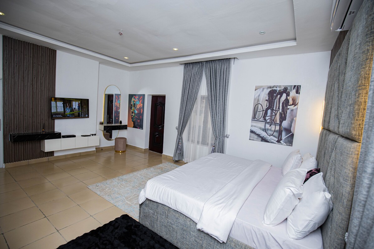 Situated at Paradise Estate(Life Camp. Luxury 1-bedroom Duplex with elegant décor, king-size bed, smart TV, fast Wi-Fi & 24/7 power. Enjoy daily housekeeping, top security, private balcony & ample parking. A resident cook prepares fresh local & continental meals on request. Perfect for business or leisure stays—comfort, privacy & premium service in a prime location.