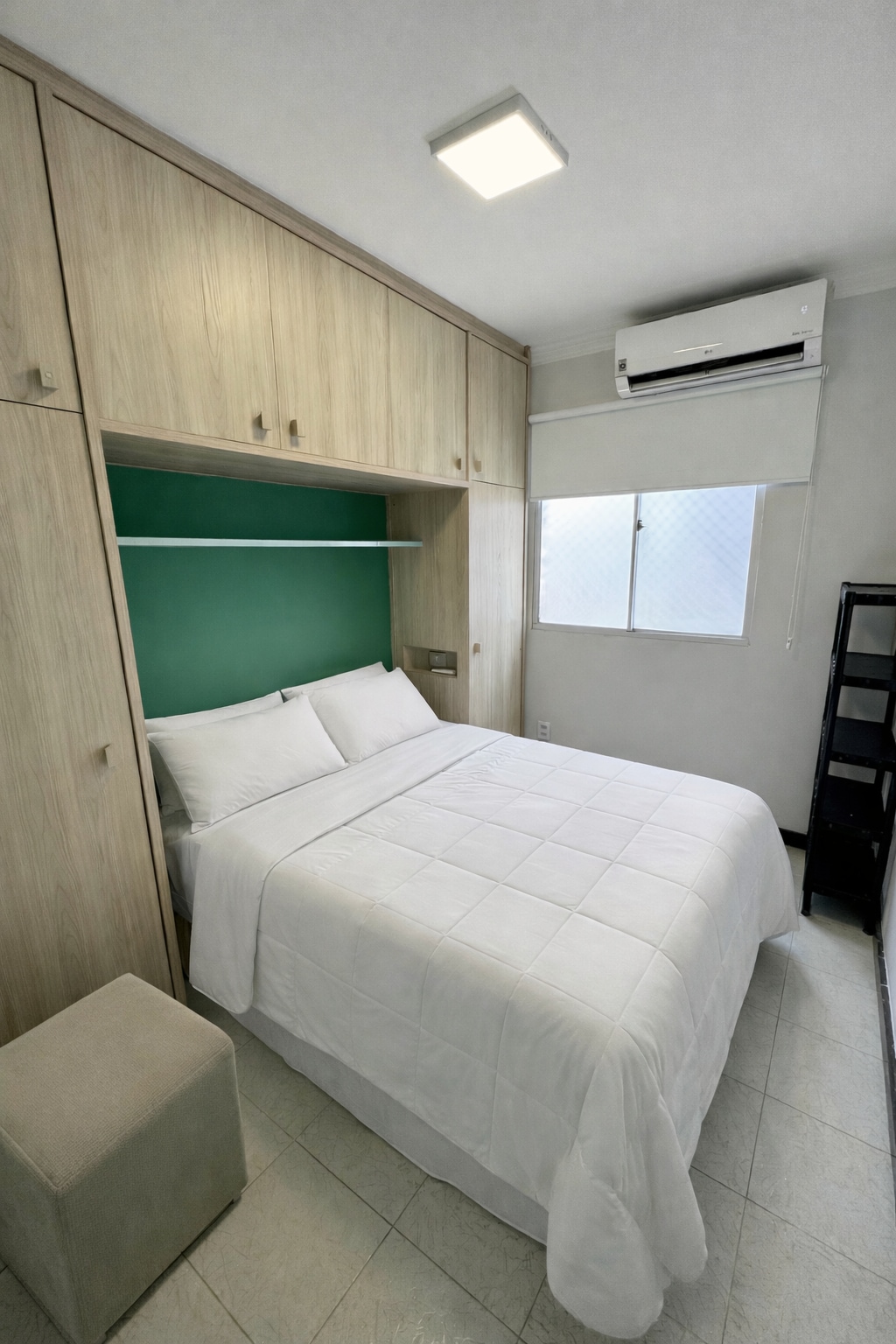 Apartment consisting of: Large living room, TV panel, Wi-Fi, Sofa Bed, table and chairs; kitchen with stove and piped gas, refrigerator, cabinets; service area; double bedroom, air conditioning, large wardrobe; single bedroom with 2 bunk beds, wardrobe, computer desk. Condominium with swimming pool and indoor leisure area. Great location: close to large supermarkets, delicatessen, bakery, pharmacy, shopping mall, banks, gym, steakhouse. Owner ready to serve you.