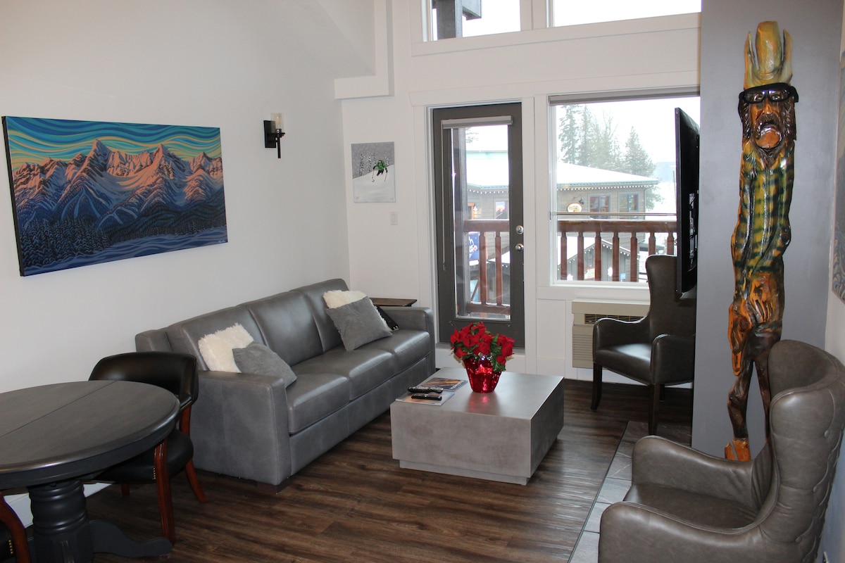 Just a few minutes walk to the chair lifts, you can ski right back in and enjoy access to the large hot tubs. This large 1 bedroom, 1 bathroom condo is perfect year ‘round. It has one of the best views of the mountain and is a main floor unit with open space concept and high ceilings. This condo has everything you need to enjoy your stay and all that Fernie has to offer. See my other listings for option to rent the adjoining hotel room-like 1 bedroom / 1 bathroom unit, sleeping 7.