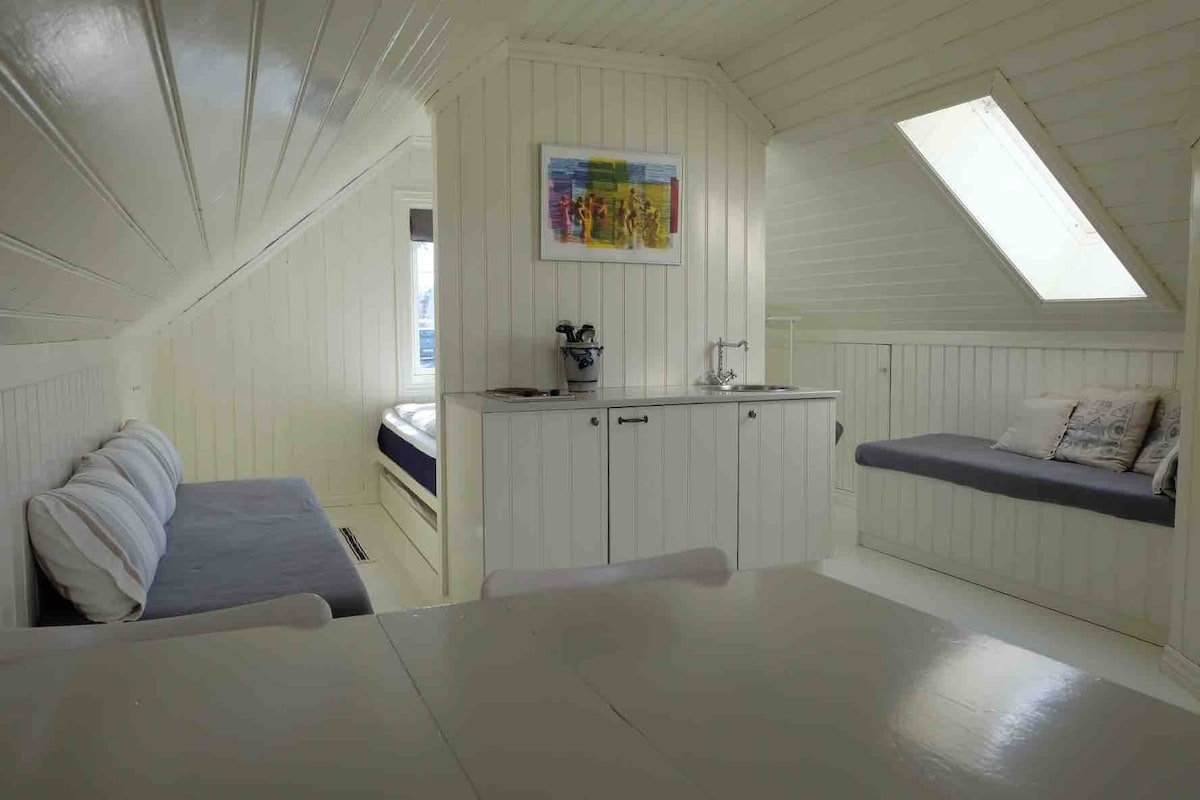 Stedet ligger i Grimstad sentrum med gåavstand til kafeer, restauranter, havna og bystranda. Gratis parkering. Det er 15 minutters gange til universitetet(UIA). Mange flotte strender i nærheten, 25 minutter til dyreparken og 20 minutter til Arendal. Loftet består av et stort rom med dobbeltseng, en enkeltseng, en hyggelig TV-krok, kjøleskap, tekjøkken med vannkoker samt et hyggelig lite bad. I tillegg har stedet en koselig terrasse med ettermiddagssol. Husdyr koster 100 kr ekstra pr. døgn.