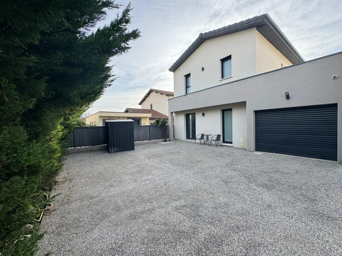 The new 20 m2 studio is located in a space independent of our house in a quiet and pleasant area with shops nearby (bakery, supermarket) The Cèdre is equipped with: - 140/200 bed - shower/toilet area - equipped kitchen (microwave, capsule coffee maker, kettle, fridge/freezer, induction stove, etc.) - air conditioning/ heating - small outdoor area 10 minutes from Lyon 5 min from the A7 and A46 SNCF train station 5 min T4 tram 5 min + bus 60/39