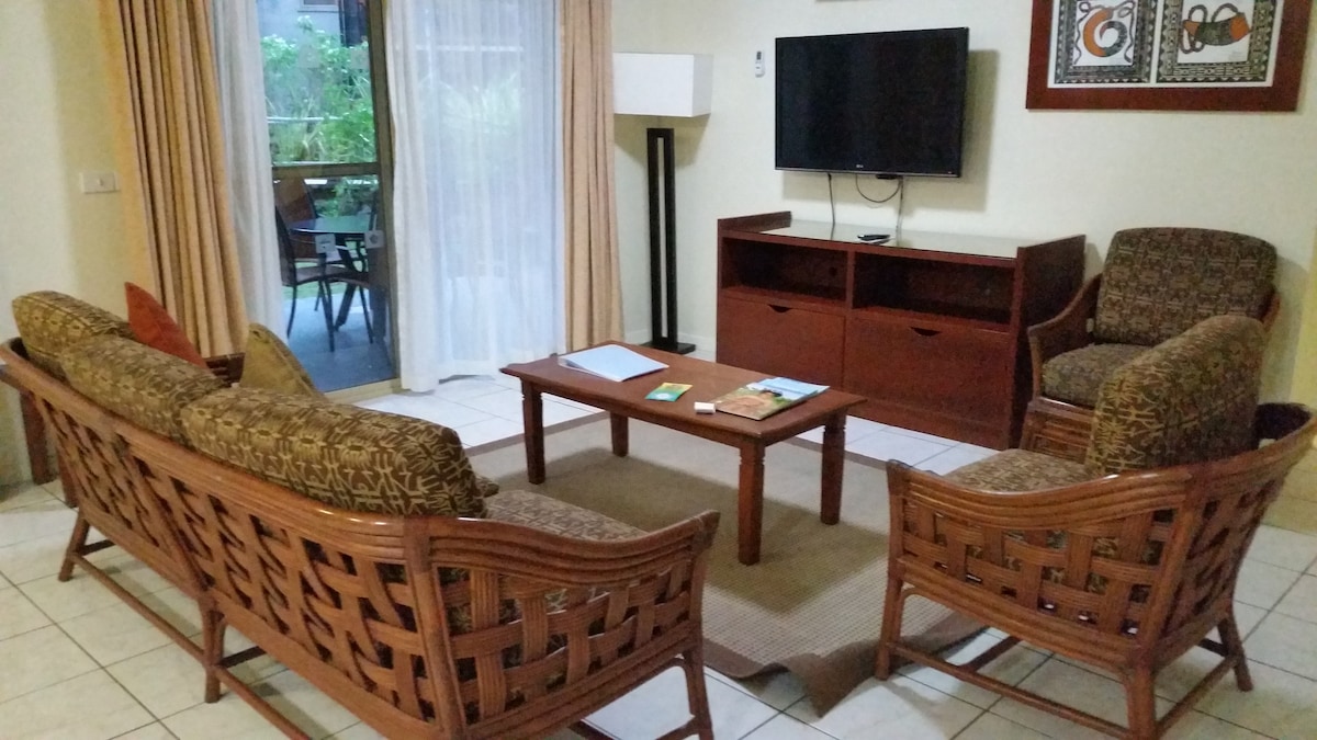 Location...Location... Location...The unit overlooks the main pool, swim-up bar and the ocean of Nadi Bay. It is so relaxing listening to the waves hugging the shores in the mornings, and then capturing the magnificent sunsets as the sun disappears beyond the horizon. Bring the whole family to this great place with lots of room for fun. It offers a Kids Club Play Center and also an Adult Pool. The Resort Staff are amazing and smiling faces are plentiful.