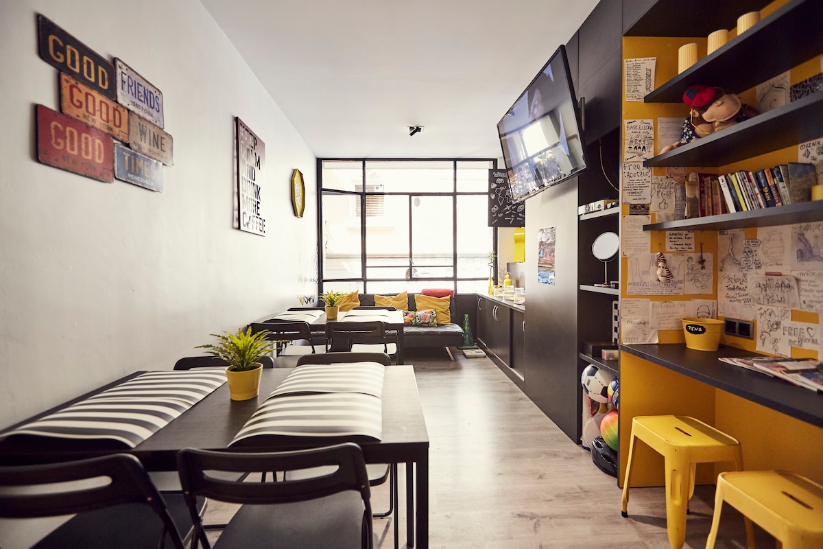 Casa Jam Barcelona, feel at home and experience slow travel with us. We are a socially and environmentally responsible accommodation that cares for people and the planet. All our family rooms overlook our private terrace, so they are quiet and safe. You will also find A/C and free WIFI. And a large shared kitchen and dining room. The reception is 24 hours a day and where we will tell you everything about Barcelona and the vibrant neighborhood of Gracia.