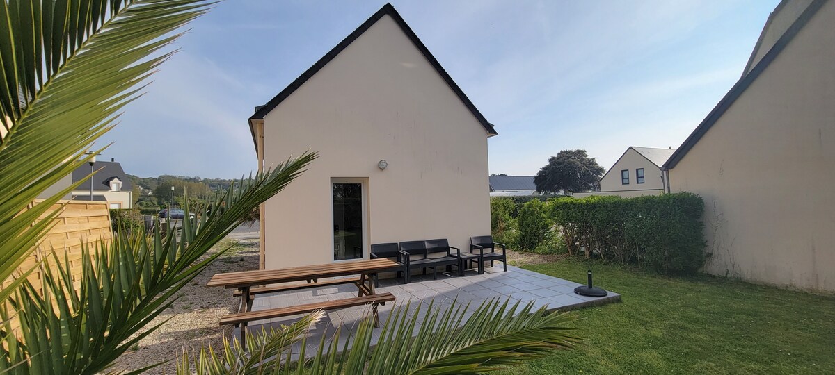 Bienvenue dans notre gite d'environ 45m2 vue sur mer en plein coeur de l'Anse de Sciotot. Cette maison rénovée entièrement début 2025 peut accueillir jusqu'à 4 personnes. Elle dispose d'une chambre avec lit double ainsi que d'un canapé convertible (avec vrai matelas). Le jardin surplombe la maison avec une vue dégagée sur la plage située à moins de 5min à pieds. Vous y trouverez bar, restaurants mais aussi aire de jeux pour enfants, terrain de pétanque, école de surf...