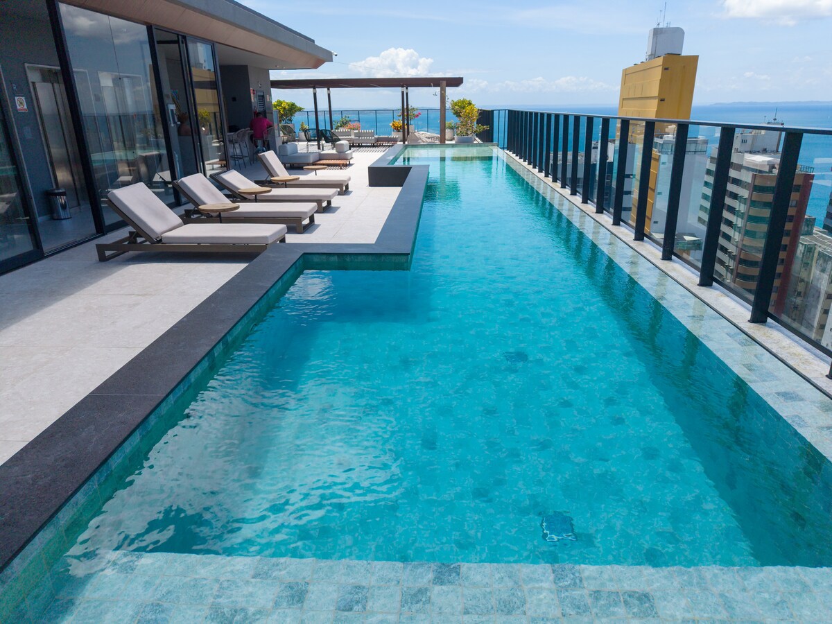 Apartment at Farol da Barra Sea View and Rooftop-Carnival