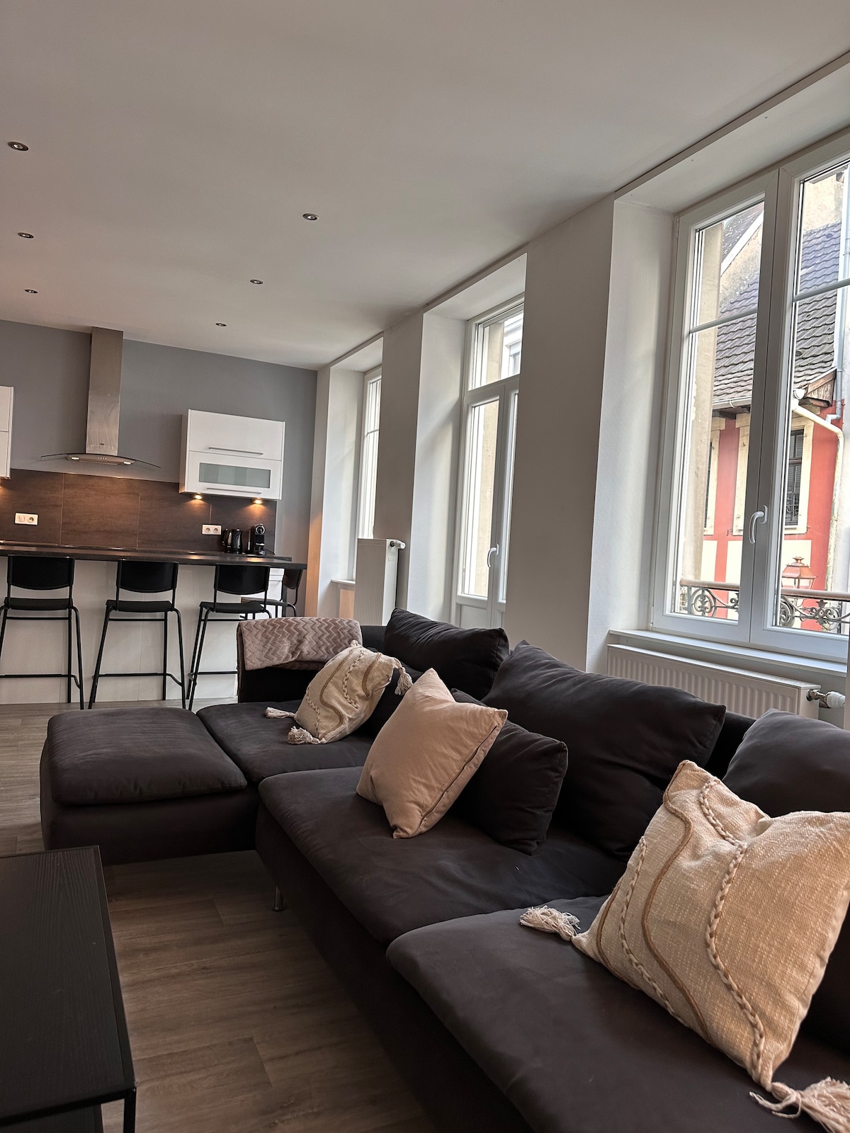 Meublé de tourisme classé 5* URBAN COMFORT is a beautiful spacious, air conditioned & fully equipped 111 m2 apartment in the historical heart of Mulhouse, steps from shops, restaurants & museums. Walking score 96 “walker’s paradise", secured underground parking w/direct elevator access, comfortable beds & pillows, large rain/cascade shower for 2, ultra high speed internet, ULTRA HD smart TV, Netflix, books & games. Sleeps 5 guests but 4 ADULTS maximum + 1 baby or toddler Come feel at home :)