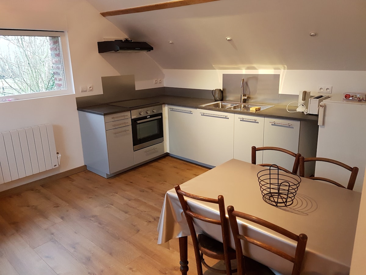 We hope to welcome you soon to our new apartment at "La Maison Rouge" located on the Lille/Dunkirk highway and SNCF line, near the train station and highway exit close to the village). - Independent apartment - Large terrace with panoramic countryside views - Wood-burning stove - Fully equipped kitchen + washer-dryer - Very carefully chosen 180/200 bedding to ensure maximum comfort - Ultra-fast fiber Wi-Fi, Apple and Orange TV - Many shops within walking distance