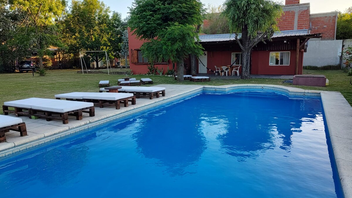 Country house with a quincho and grills, a clay oven, an 18 m2 outdoor pool surrounded by 3420 m2 of green spaces. Ideal for all kinds of events such as weddings, birthdays, family or business gatherings. It also has a fully equipped kitchen, three bathrooms, two beds and a futon, WiFi and smart TV. We also offer complete outdoor furniture, and complete tableware for 50 people.