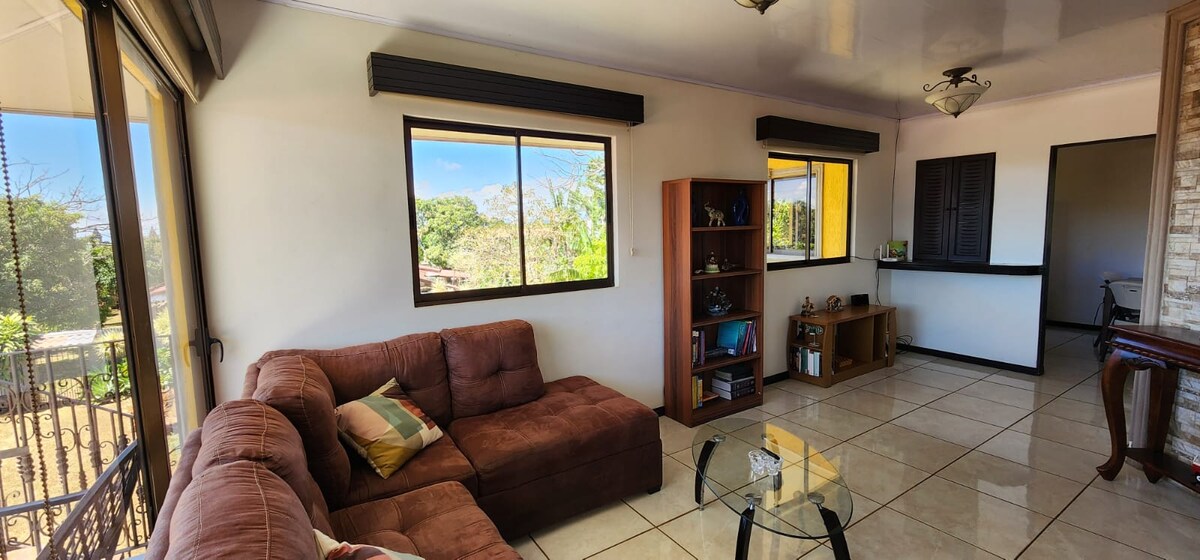 Cozy apartment on the second floor, with two bedrooms, 8 minutes from the airport. Very quiet, safe residential area, very cool climate, ideal for jogging or walking at any time. Close to shopping malls, mini supermarkets, pharmacies, supermarkets. Space to walk, green areas. Easy access to roads for Volcán Poas (volcano), Braulio Carrillo National Park and others. Secure parking for one car. Private entrance, we have Netflix and Disney+. You will feel right at home!