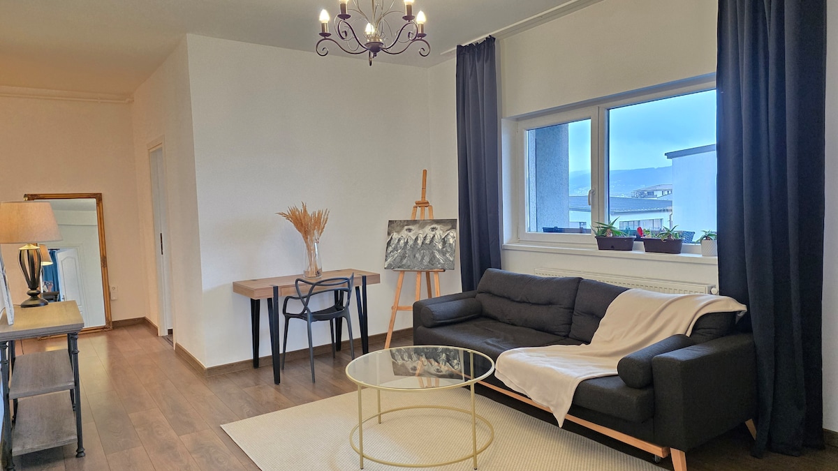 A comfortable 1 bedroom apartment for up to 4 travellers located between 21 Decembrie Bulevard and Calea Dorobantilor in a new modern building. The apartment has a great view in a clean and quiet building in between 2 major routes. The streets alone offer quick access into downtown (5 min at the most), an easy route to the airport and top Office buildings in Cluj(The Office, Iulius Mall). The down town is minutes away, with coffee shops nestled along the way.