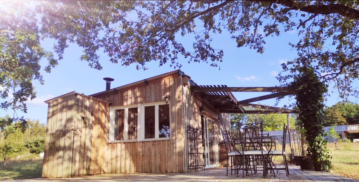 Come and enjoy an atypical 25 m² cabin in the heart of nature. I built this quiet little cocoon that can accommodate one to three people (a 140 bed and a sofa bed). Guests can take advantage of the large wooden terrace and its beautiful sunsets. Our philosophy in the heart of nature and in line with it required the installation of dry toilets (external and attached to the accommodation). The Nordic bath is private and optional.