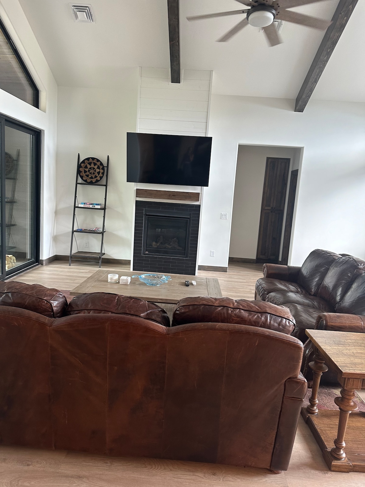 Experience our Luxury Cabin Getaway in the pines! Take in the breathtaking view overlooking the Meadow while staying close to town. Our modern cabin/villa is ideal for a family looking for a peaceful trip to the mountains. King size bed, Queen size (sofa bed), large bathroom w/wet room, and a full size kitchen. Tons to do within walking distance including hiking, disc golf and fishing! Popular restaurants are just around the corner or order in and watch your choice of entertainment on two sma