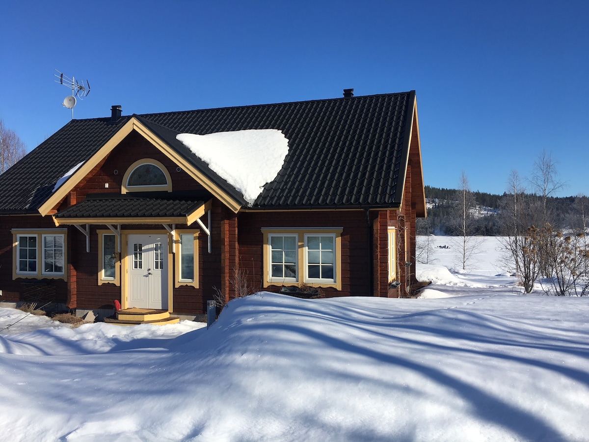 Quality living in a quiet place with lot's of opportunities in the winter like slalom, cross-countryskiing, skating or take a sauna bath. In the summer you can use the rowing boat for fishing, take a swim from the private pontoon in to the lake or relaxing on the veranda or the greenhouse. Perfect place for family and friends. A big modern kitchen and a living room with a lot's of space. The house is close to Järvsö, the Bike Park and Järvzoo.