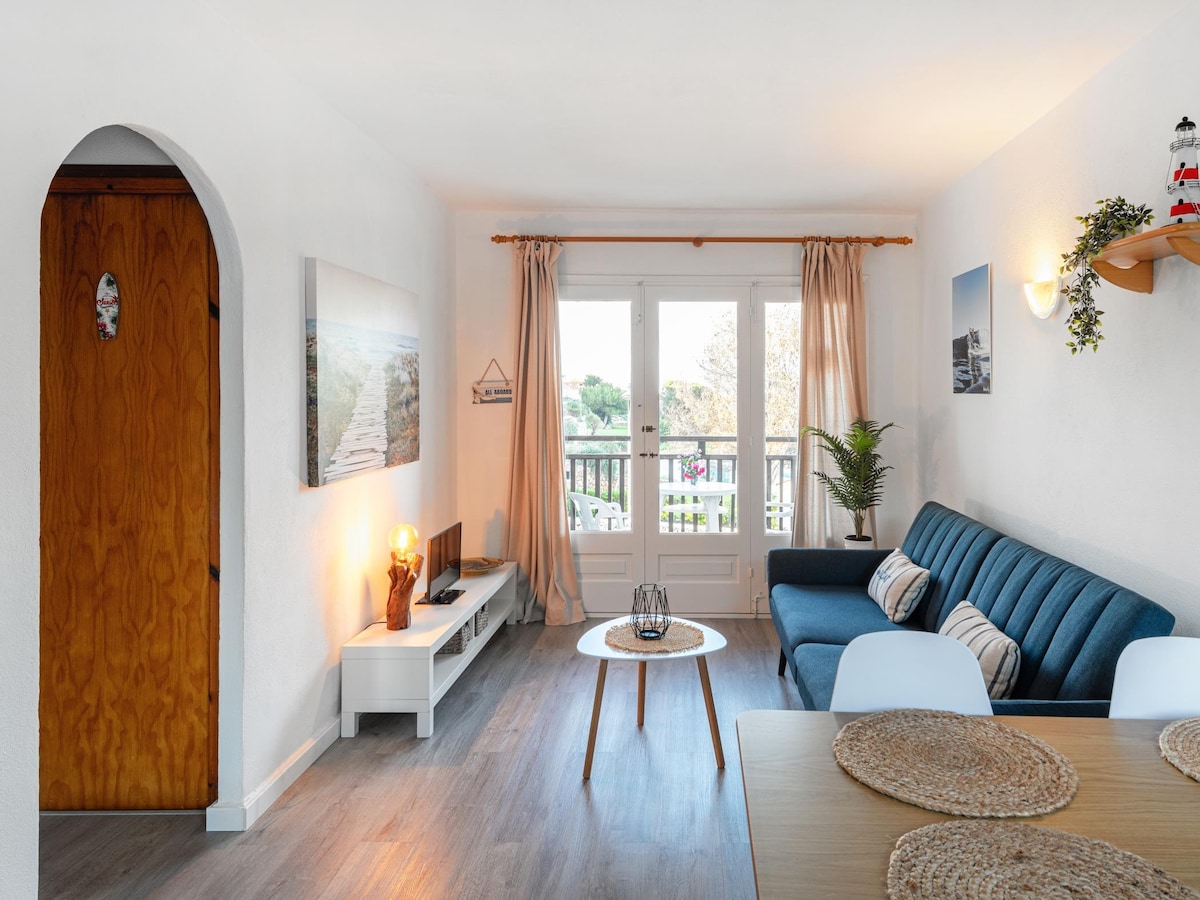 Cozy 40 m² apartment with 2 private terraces and ocean views, ideal for relaxing in Menorca. 1 bedroom, 1 bathroom, living room with integrated kitchen and 2 double beds (for 4 people). Perfect for couples or small families. Located in a quiet family complex with green areas, close to supermarkets, bus stop and GR. Just 200 m from Arenal d'en Castell Bay, enjoy sun, sea and outdoor activities. Unforgettable vacations with all the amenities!