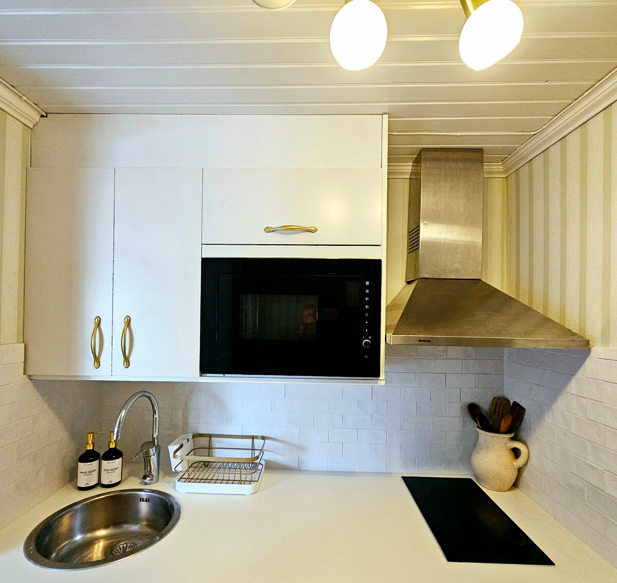 Relax in this unique and peaceful accommodation with proximity to the swimming area. Here you enter the calm directly surrounded by the turn-of-the-century charm, linseed oil painted beadboard, well-equipped kitchen with large gas stove for those interested in cooking as well as amenities such as a dishwasher and water from a newly drilled well. Enjoy sitting in front of a crackling fire after a walk in the mushroom forest or cooling AC in the summer. The house was completely renovated in 2020. No shower and toilet inside but has a newly built outdoor shower and fresh outdoor toilet.