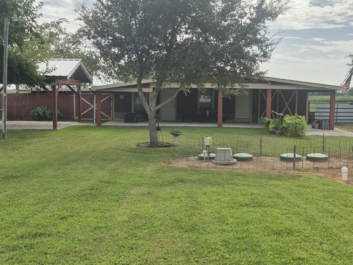 Cozy barn house is perfect for a quiet get away. This property is isolated from the city and sits on 4 acres with a few pet cows & ponies to admire. The lighted pavilion is a great BBQ area that provides a warm, relaxed ambience for socializing in the evening. Tree stumps around the firepit are perfect for unwinding and reconnecting with nature. 2 cozy hammocks that can be hung in the pavilion, porch or in the trees. Book your stay today and create lasting memories in this delightful hideaway.